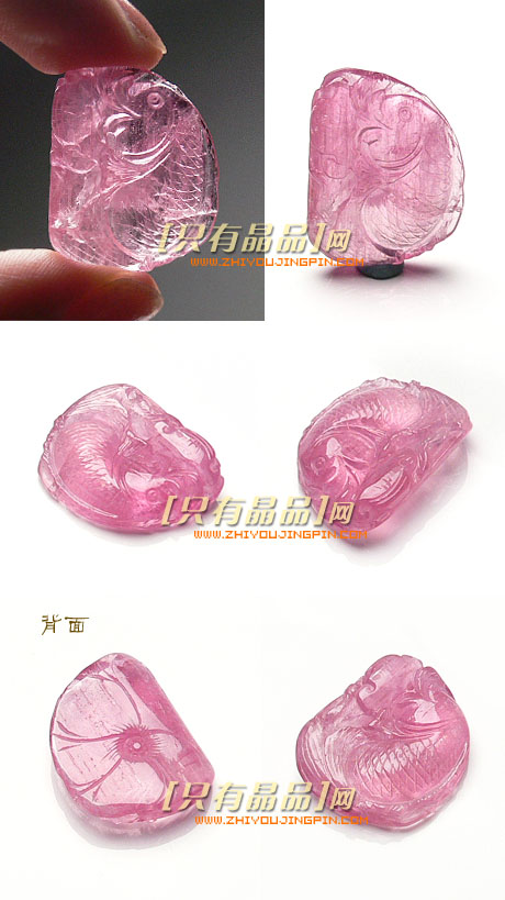 精品桃红色碧玺鱼雕刻挂坠,晶体比较干净,有碧玺特有的丝状纹理,也有碧玺中最为鲜艳的桃红色,佩戴起来很亮眼。