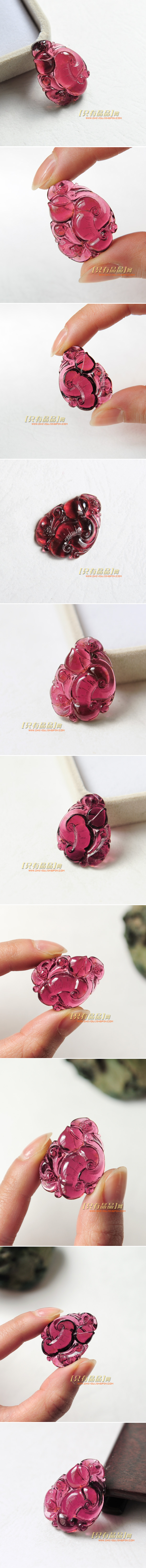极品玻璃体桃红色碧玺福寿如意吊坠,晶体清透,颜色清新艳丽,值得收藏。