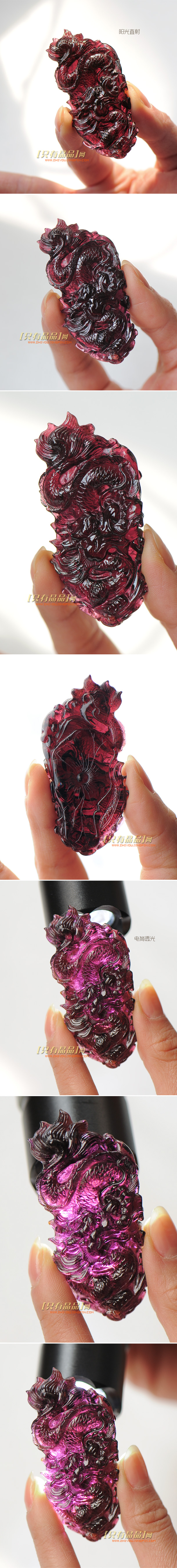 极品大颗玫瑰红色碧玺雕刻龙牌吊坠。料大且体透色浓,立体的龙雕工精细,非常值得收藏。