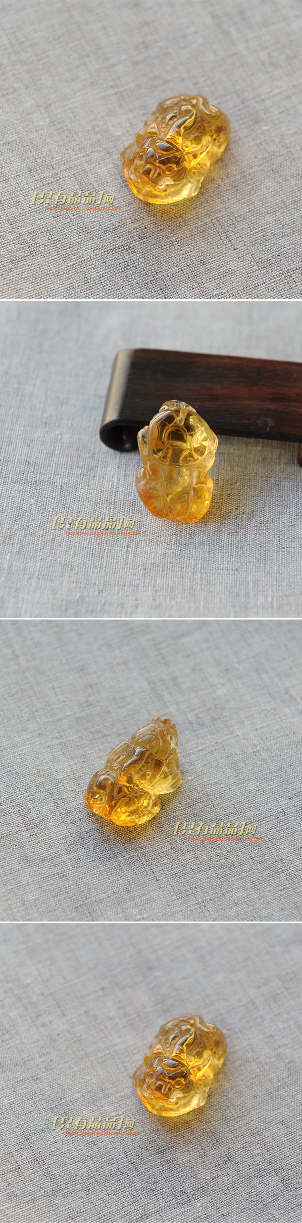 极品巴西橘黄晶雕刻貔貅挂坠。晶体干净清透,没有橘黄晶常见的冰裂纹或棉絮。颜色鲜艳,可以看出天然橘黄晶特有的色带变化。