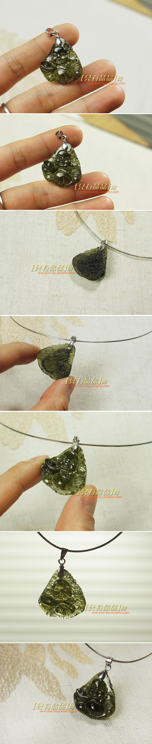 捷克陨石的单面雕刻笑佛挂坠。就像开山造像一样,正面是完美精美的佛像雕刻,背面保留了陨石的纹理。形状正,颜色绿,雕工精细,背面纹路均匀漂亮,成色非常难得。