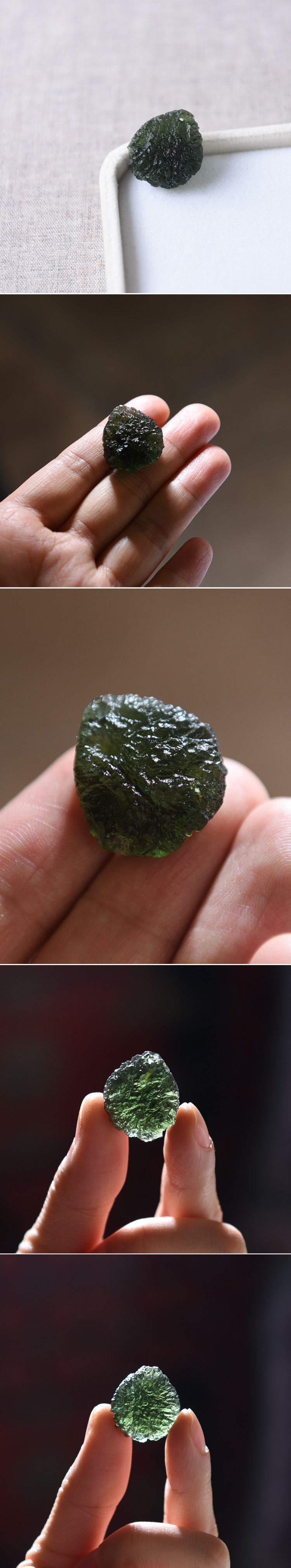 捷克陨石是六千四百万年前到达地球,主要成分来自高含量的硅,有时含极微量的水,偶而透过光线可看到其中有细小气泡。主要落地点在捷克及邻近国家,因此得名,非常稀有,据说目前最大的捷克陨石也不过约两百克左右!