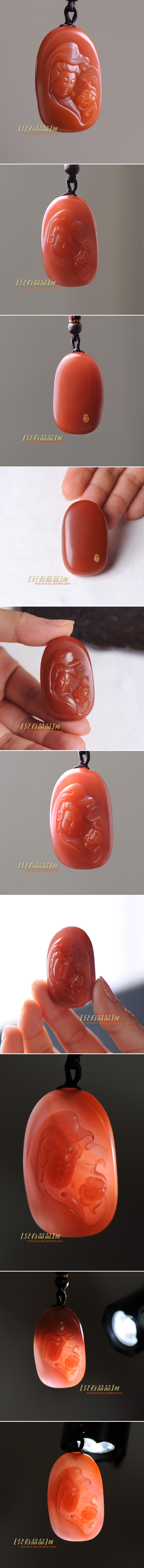 极品南红玛瑙(赤玉)-苏工玉雕名家作品-观音吊坠,带落款。纯色柿子红,质地极其温润,很强的玉质感,强光下晶体呈半透状。大师作品雕工精湛,艺术感强。无论是工还是料都有很高的收藏价值。