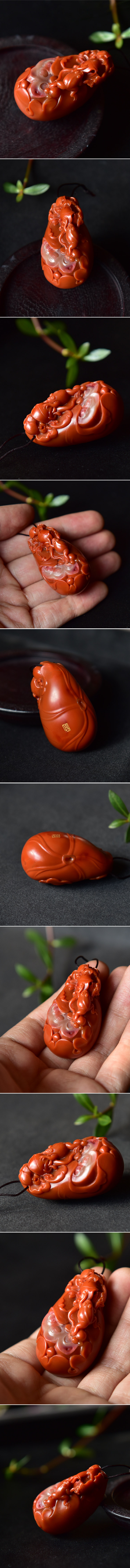 纯色天然柿子红雕刻“荷塘”题材,苏工名家作品。大颗饱满,料形中正,像一颗小号的鸡蛋;艳色纯且质地细腻,整体为满肉柿子红,中间少许白肉巧色为莲蓬,醉可爱的就是这只胖青蛙,在爬向一朵荷花;这件作品设计感较强,一副生动的荷塘画面,工艺细腻到位,名家作品,值得珍藏。
