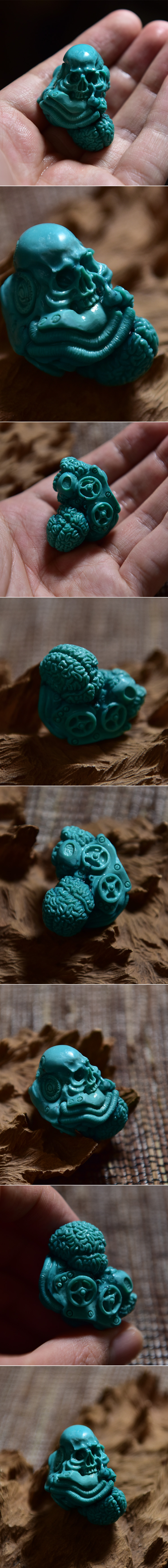 极品天然原矿竹山绿松石挂坠,北工名家雕刻僵尸骷髅吊坠。北京独立玉雕艺术工作室出品,骷髅题材极为精湛,不难看出设计上非常用心,而且是极为费时费工的雕刻手法,料子瓷都硬度都极佳。