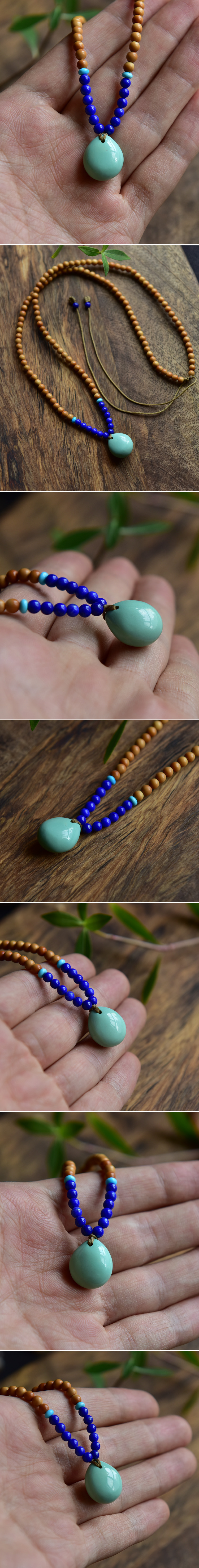 天然原矿绿松石水滴形吊坠,配项链。瓷度高,颜色均匀干净,基本没铁线。配高品质青金石、橄榄核项链,性价比很高。
