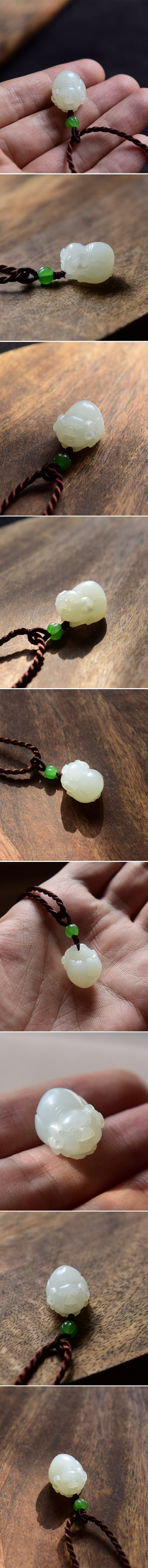 精品苏工和田玉白玉福猪雕刻件吊坠。玉质干净细润,油性高,雕工细腻,小猪呆萌可爱。小精品个头不大,适合当小吊坠或镶嵌个戒指。