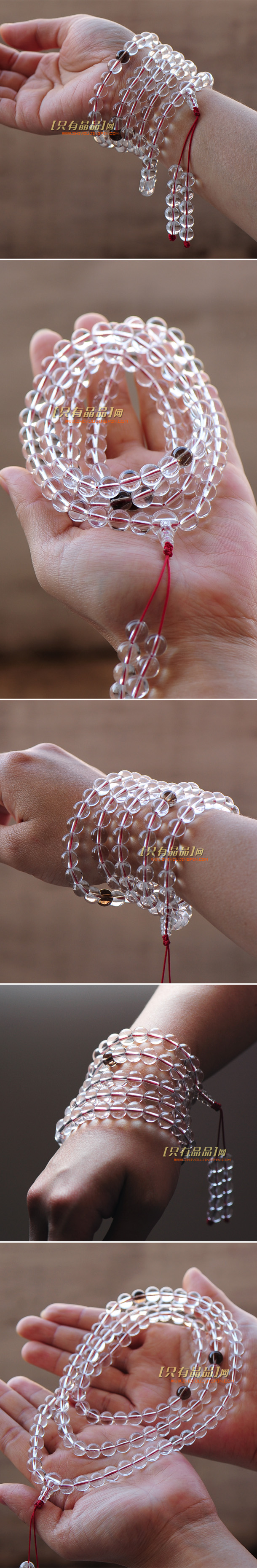极品8mm天然白水晶108颗佛珠。精选优质天然白水晶,晶体干净清透,没有棉絮或冰裂纹,配茶晶隔珠。适合做手链、项链、车挂、室内悬挂等。