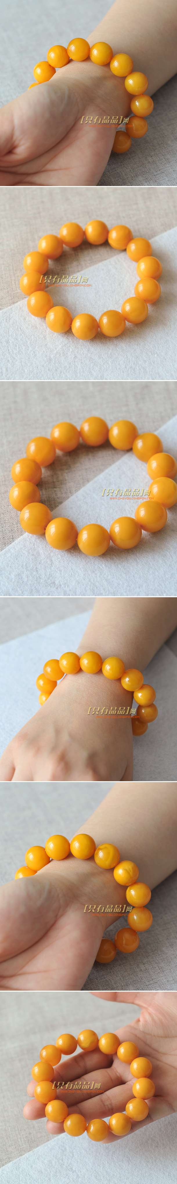 波罗的海蜜蜡-极品大颗鹅黄色老蜜蜡手链,老蜜蜡是蜜蜡家族中最珍贵,价值贵高的品种,尤其是大颗的,对于老蜜蜡圆珠越是大颗越少,其价值也越高。颜色浓郁温暖,表面温润油亮,值得收藏。