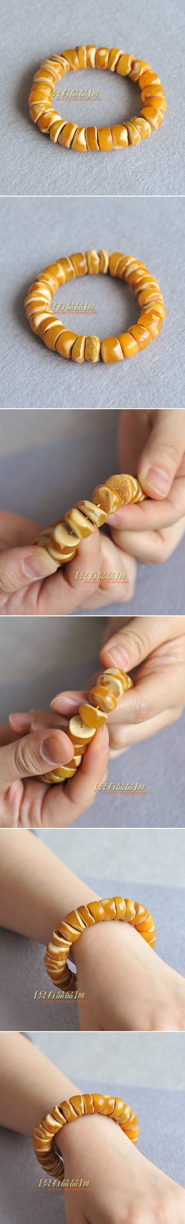 双面带石皮老蜜蜡盘珠手链,每一颗算盘珠的两面都保留着天然是石皮,带着天然的风化味道。
