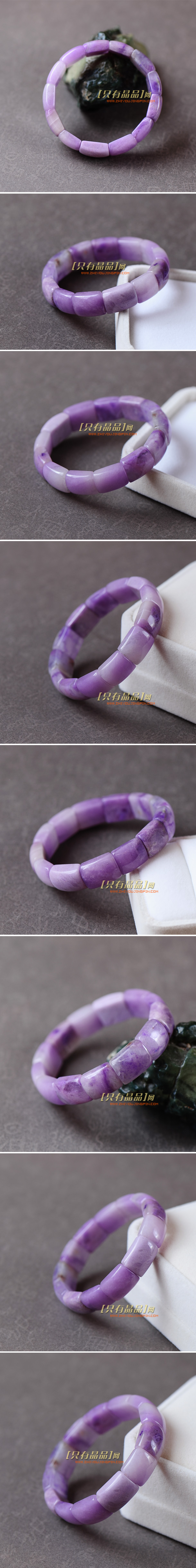 极品冰糯种紫罗兰色舒俱来手排。颜色是淡淡的粉紫色,晶体有半透质感。